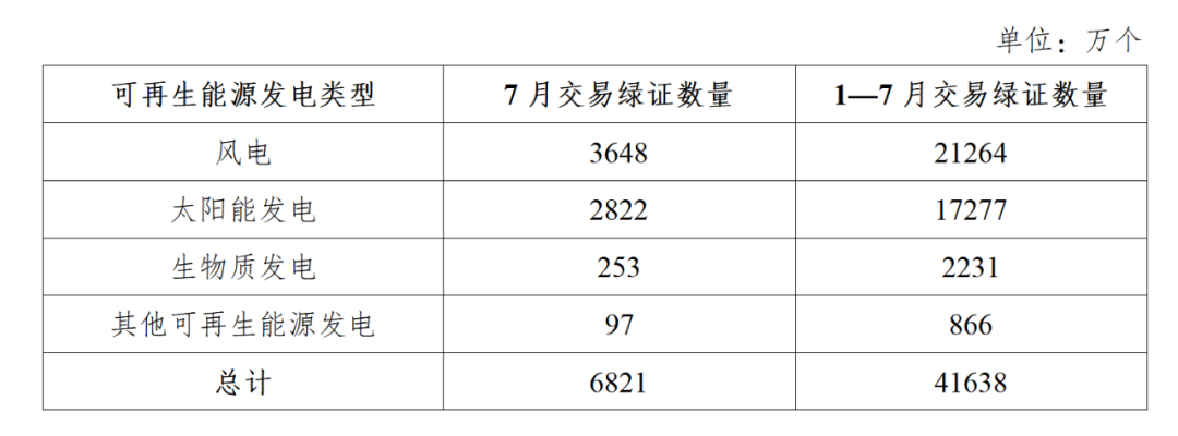 2025年7月,全國(guó)交易綠證6821萬個(gè),其中綠色電力交易綠證3472萬個(gè)。2025年1—7月,全國(guó)交易綠證4.16億個(gè),其中綠色電力交易綠證1.41億個(gè)。