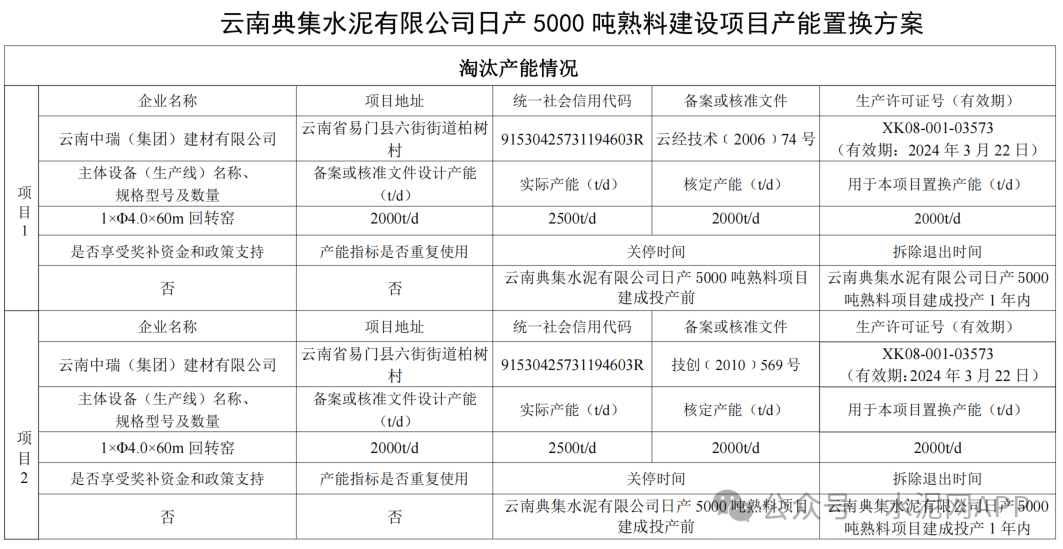 云南典集水泥有限公司申請撤銷“云南典集水泥有限公司日產(chǎn)5000噸熟料建設(shè)項目產(chǎn)能置換方案”。按照原計劃,該企業(yè)擬建一條5000t/d熟料生產(chǎn)線,退出產(chǎn)能來自云南中瑞(集團)建材有限公司2條2000t/d、元江縣永發(fā)水泥有限公司1000t/d、祥云縣建材(集團)有限責任公司1000t/d、云南省活發(fā)集團劉總旗水泥有限公司2500t/d(用于本項目250t/d)共計5條生產(chǎn)線。
