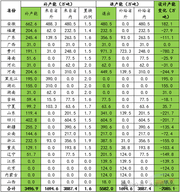 表:補(bǔ)產(chǎn)能置換數(shù)據(jù)信息