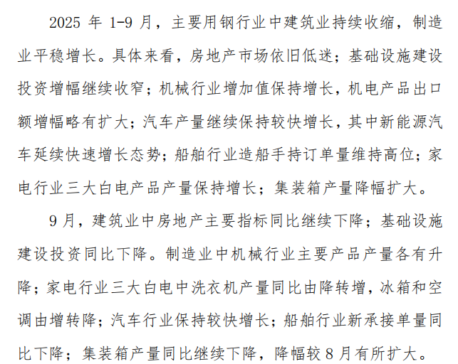 9月份主要用鋼行業(yè)運(yùn)行月報(bào)