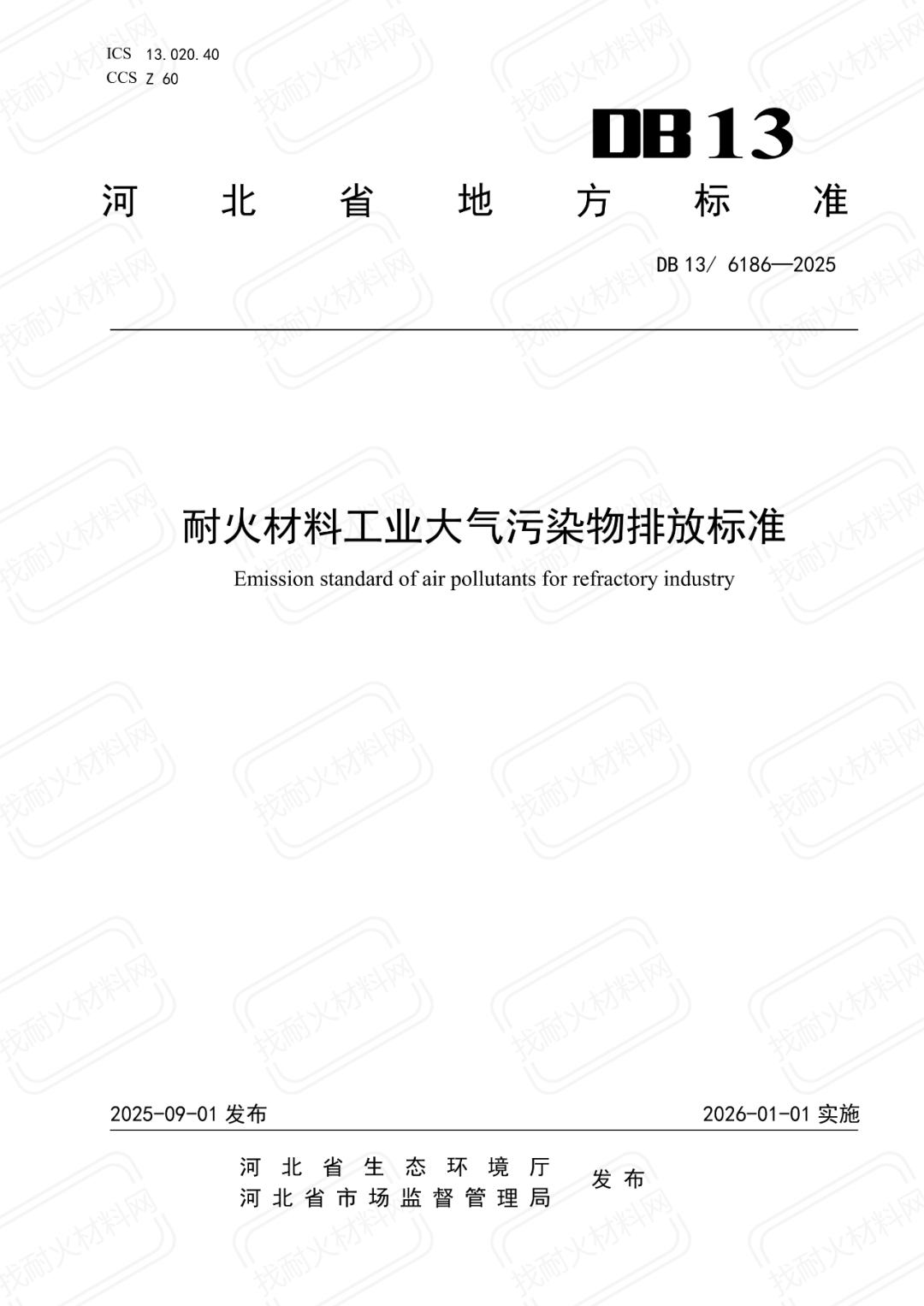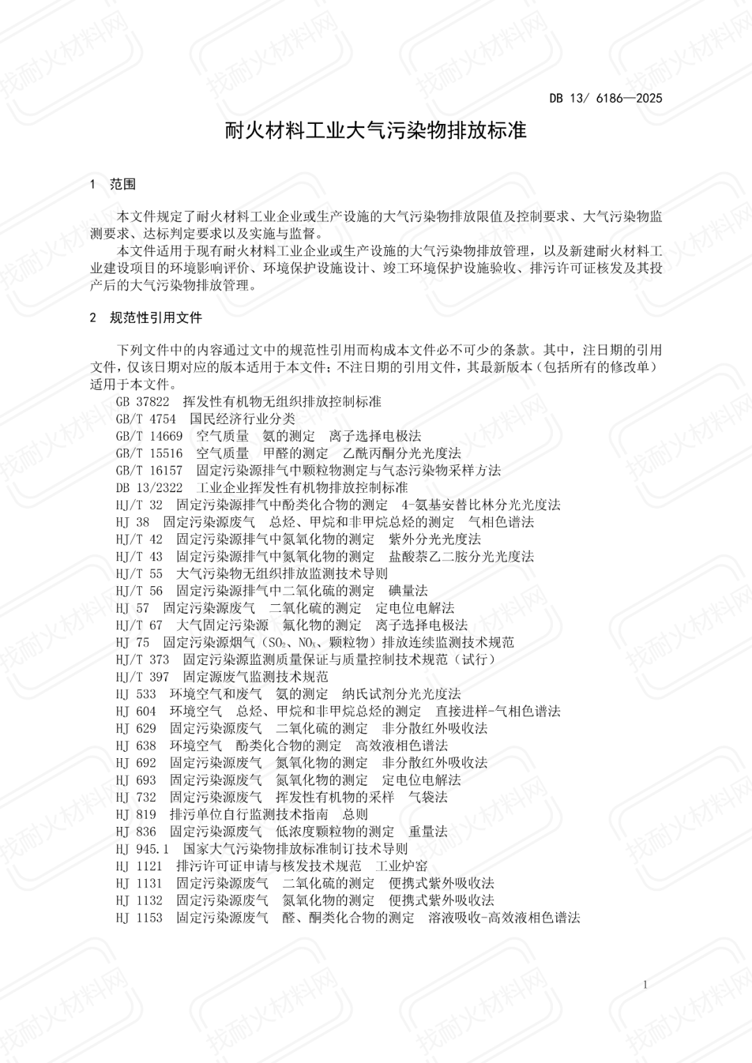 本文件規(guī)定了耐火材料工業(yè)企業(yè)或生產(chǎn)設(shè)施的大氣污染物排放限值及控制要求、大氣污染物監(jiān)測要求、達(dá)標(biāo)判定要求以及實(shí)施與監(jiān)督。