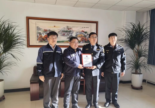 11月21日,鲅魚(yú)圈區(qū)市場(chǎng)監(jiān)督管理局局長(zhǎng)崔越峰蒞臨公司,代表政府監(jiān)管部門(mén)授牌,公司總經(jīng)理王洪勤代表公司接受授牌。