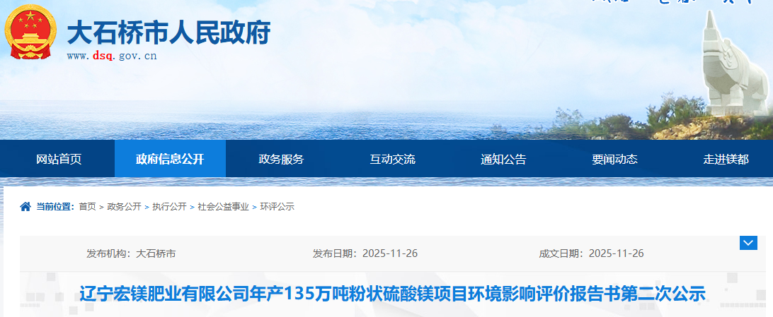 電子版報(bào)告下載:征求意見稿-遼寧宏鎂肥業(yè)有限公司年產(chǎn)135萬噸粉狀硫酸鎂項(xiàng)目環(huán)境影響報(bào)告書