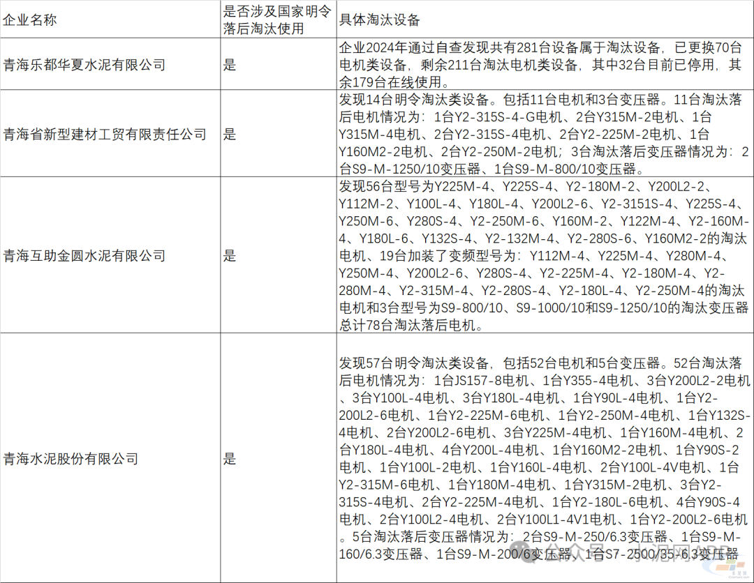 多家水泥企業(yè)存在使用淘汰類設(shè)備的情況:
