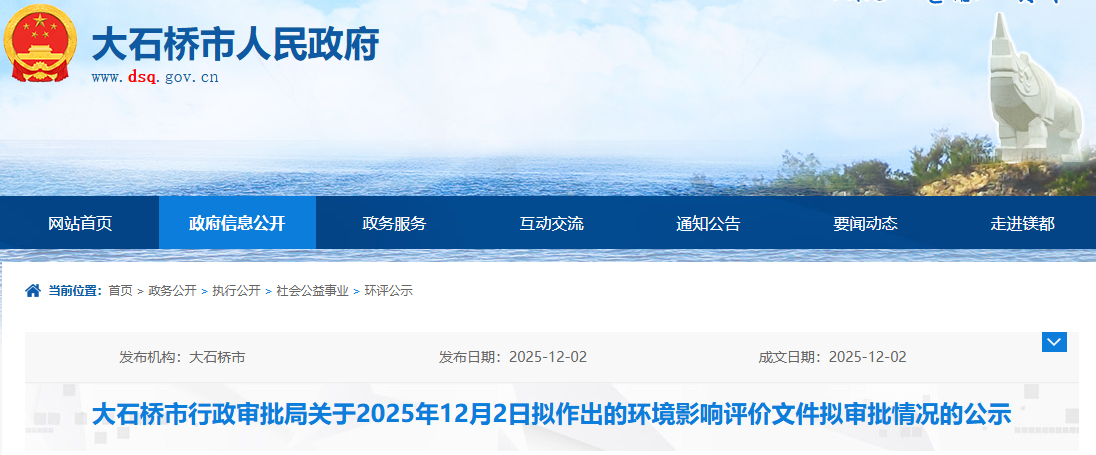 根據(jù)建設(shè)項(xiàng)目環(huán)境影響評(píng)價(jià)審批程序的有關(guān)規(guī)定,經(jīng)審查,我局?jǐn)M對(duì)1個(gè)項(xiàng)目環(huán)境影響評(píng)價(jià)文件作出審批意見(jiàn)。為保證此次審查工作的嚴(yán)肅性和公正性,現(xiàn)將擬作出審批意見(jiàn)的環(huán)境影響評(píng)價(jià)文件基本情況予以公示,公示期為2025年12月1日-2025年12月5日(5個(gè)工作日)。