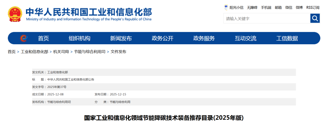 為貫徹落實(shí)《國(guó)務(wù)院辦公廳關(guān)于印發(fā)〈制造業(yè)綠色低碳發(fā)展行動(dòng)方案(2025-2027年)〉的通知》(國(guó)辦發(fā)〔2025〕21號(hào)),加快推廣節(jié)能降碳先進(jìn)技術(shù),加強(qiáng)重點(diǎn)行業(yè)領(lǐng)域技術(shù)改造升級(jí)和大規(guī)模設(shè)備更新,現(xiàn)將《國(guó)家工業(yè)和信息化領(lǐng)域節(jié)能降碳技術(shù)裝備推薦目錄(2025年版)》予以公告。附件:國(guó)家工業(yè)和信息化領(lǐng)域節(jié)能降碳技術(shù)裝備推薦目錄(2025年版).pdf工業(yè)和信息化部2025年12月8日