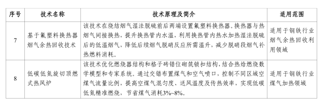 附件中涉及的鋼鐵行業(yè)節(jié)能降碳技術(shù)如下所示。
