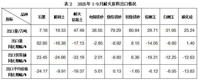 1. 耐火原料出口情況