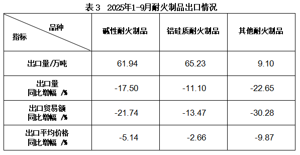 三、1-9 月中國(guó)耐火材料進(jìn)出口情況
