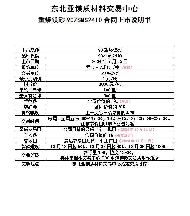 東北亞鎂質(zhì)材料交易中心 重?zé)V砂90ZSMS2410合同上市說(shuō)明書(shū)