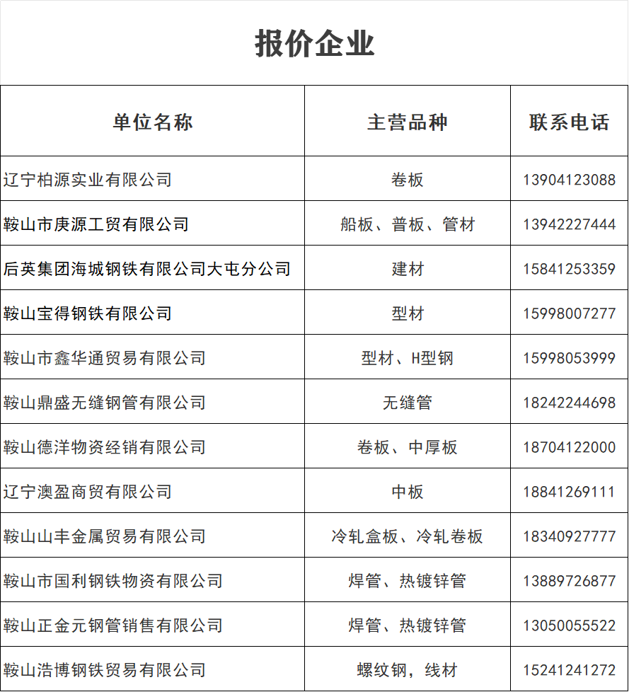 3月2日 鞍山地區(qū)鋼材價(jià)格表