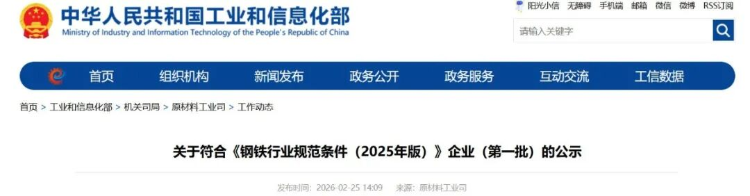 關(guān)于符合《鋼鐵行業(yè)規(guī)范條件(2025年版)》企業(yè)(第一批)的公示
