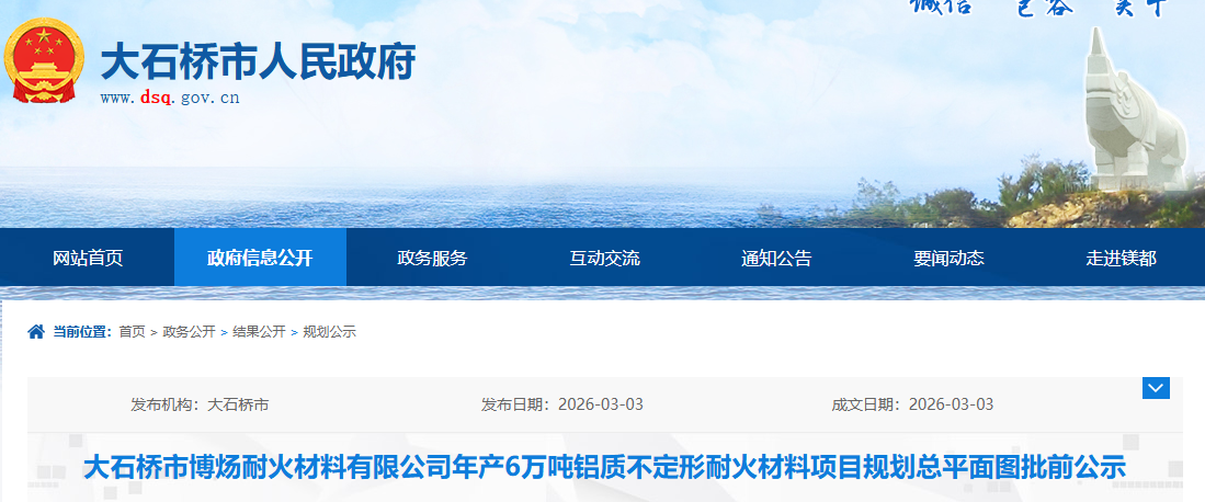 大石橋市博煬耐火材料有限公司年產(chǎn)6萬(wàn)噸鋁質(zhì)不定形耐火材料項(xiàng)目規(guī)劃總平面圖批前公示