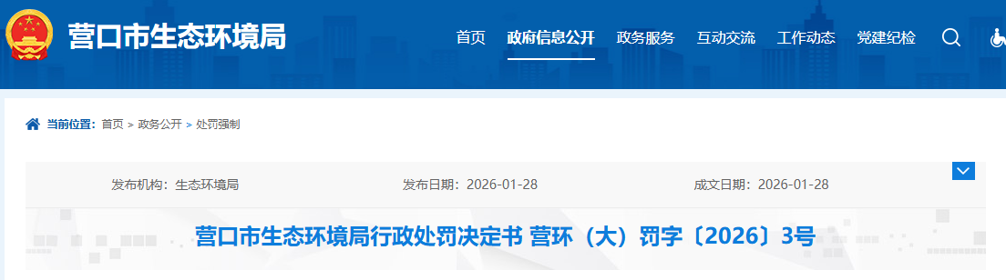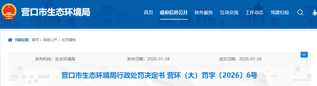 營口市環(huán)保整改一直在持續(xù)進行中,就在近日,營口市生態(tài)環(huán)境局在官網(wǎng)發(fā)出公告,對大石橋市2家輕燒氧化鎂生產(chǎn)企業(yè)環(huán)境違法行為的行政處罰進行了公示。