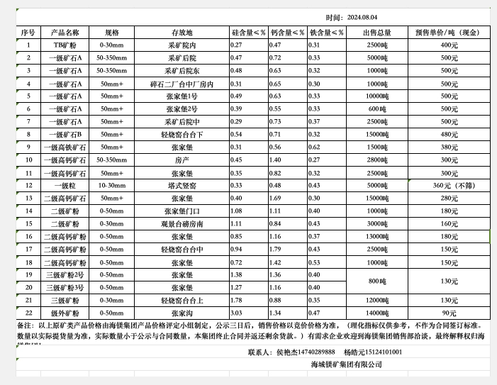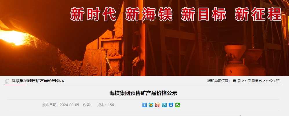 海鎂集團(tuán)預(yù)售礦產(chǎn)品價(jià)格公示
