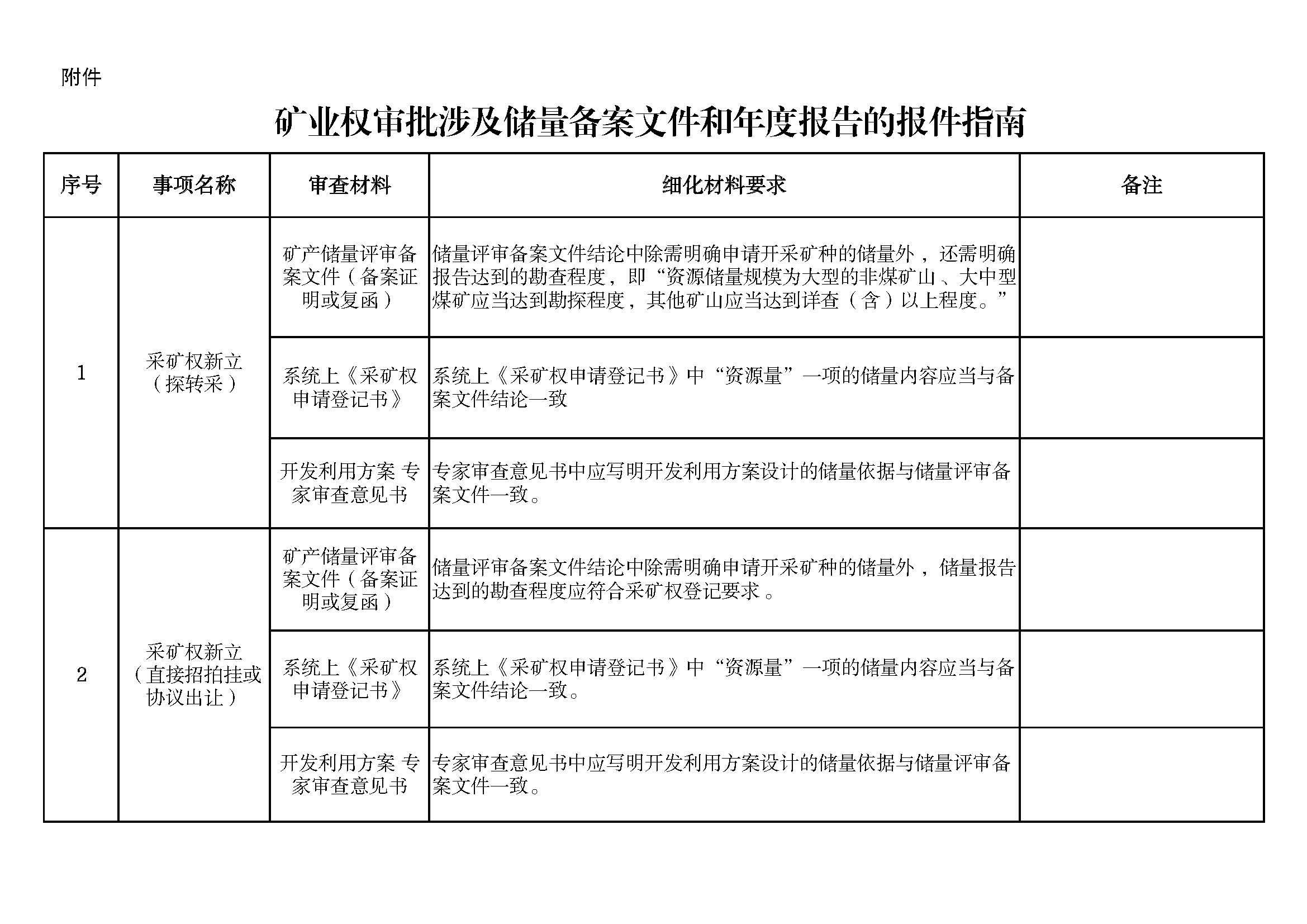 附件:礦業(yè)權(quán)審批涉及儲量備案文件和年度報告的報件指南