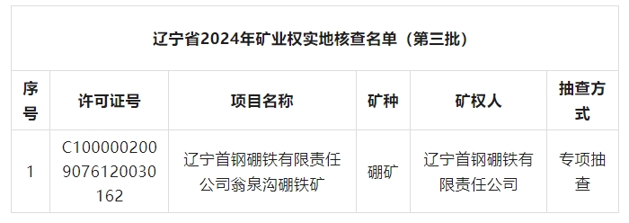 附件:遼寧省2024年礦業(yè)權實地核查名單(第三批)