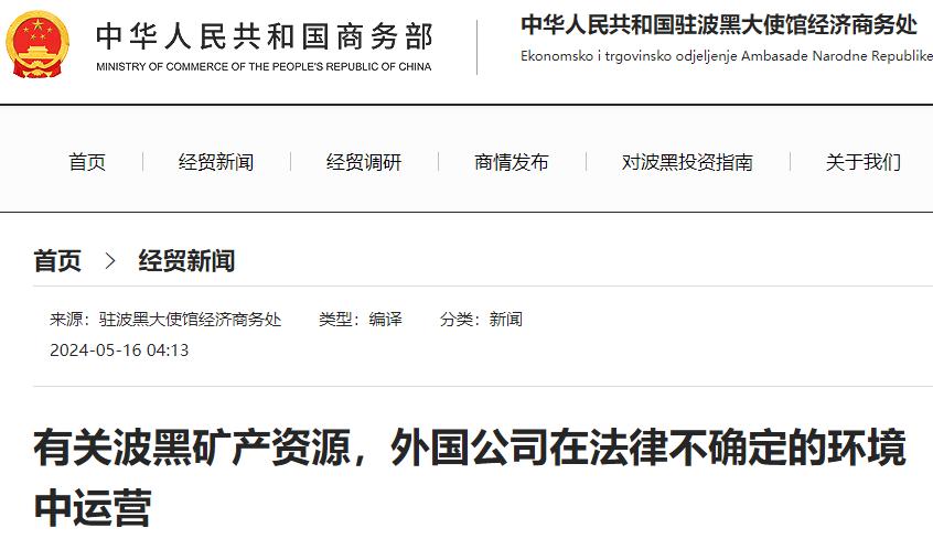 波黑《薩拉熱窩時報》5月13日報道。歐盟在波黑擁有重大戰(zhàn)略利益,波黑蘊藏著大量礦產(chǎn)和金屬,有助于其綠色轉型,國際公司正在利用復雜的國家結構開采當?shù)氐V產(chǎn)資源,外國公司在法律不確定的環(huán)境中運營。