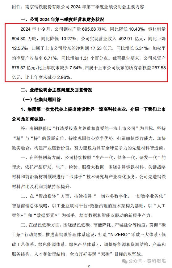 南鋼股份10月29日發(fā)布關(guān)于2024年第三季度業(yè)績(jī)說(shuō)明會(huì)召開(kāi)情況的公告,其中海外印尼焦炭項(xiàng)目進(jìn)展:關(guān)于截至2024年三季度末,公司印尼金瑞年產(chǎn)260萬(wàn)噸焦炭項(xiàng)目,四座焦?fàn)t已全部投運(yùn);印尼金祥390萬(wàn)噸焦炭項(xiàng)目,1#-4#焦?fàn)t已轉(zhuǎn)入試生產(chǎn),其余5#、6#焦?fàn)t及其配套設(shè)施正在按序推進(jìn)施工。2024年1~9月,印尼金瑞新能源焦炭銷量185.67萬(wàn)噸,實(shí)現(xiàn)營(yíng)業(yè)收入46.16億元、凈利潤(rùn)0.8億元;印尼金祥新能源焦炭銷售3.77萬(wàn)噸,實(shí)現(xiàn)營(yíng)業(yè)收入0.6億元、凈利潤(rùn)-0.22億元。具體如下:
