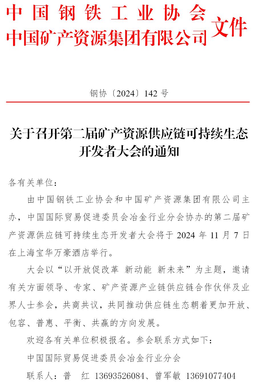 關(guān)于召開第二屆礦產(chǎn)資源供應(yīng)鏈可持續(xù)生態(tài)開發(fā)者大會的通知