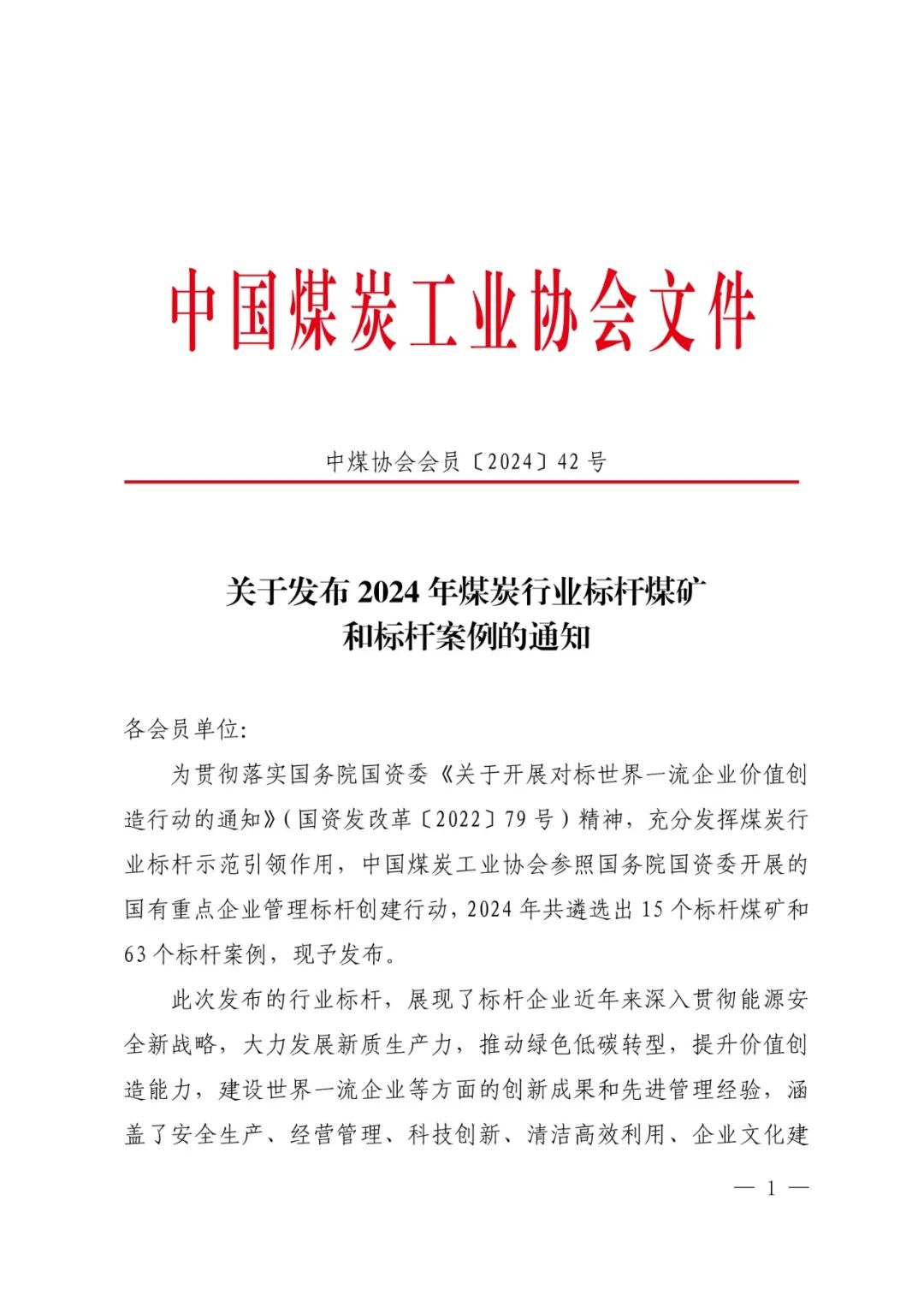 關于發(fā)布2024年煤炭行業(yè)標桿煤礦和標桿案例的通知?