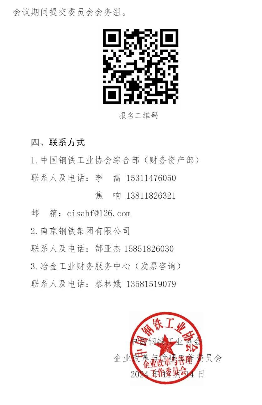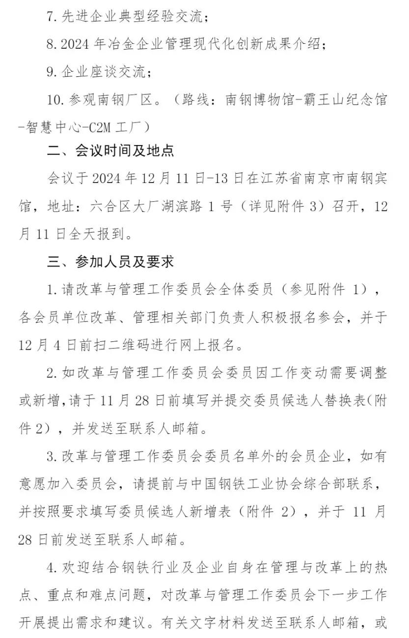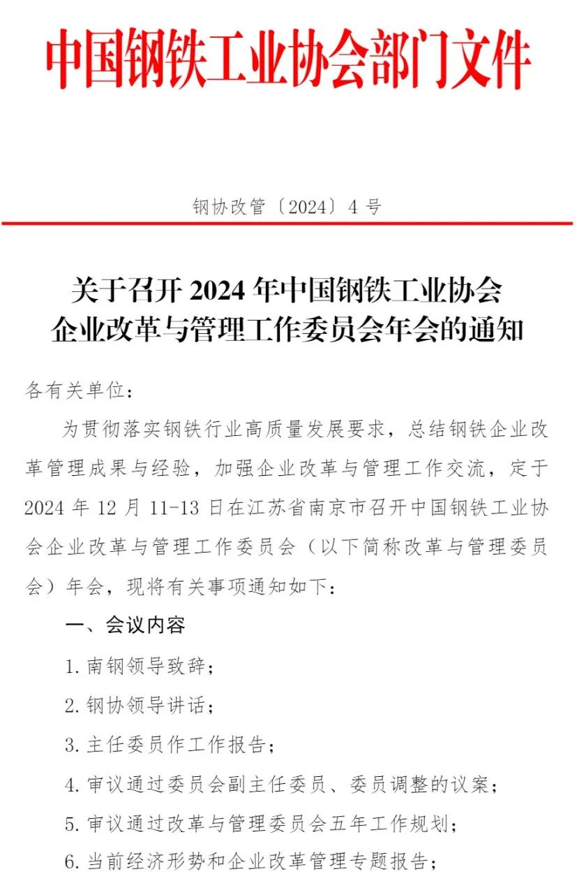 關(guān)于召開(kāi)2024年中國(guó)鋼鐵工業(yè)協(xié)會(huì)企業(yè)改革與管理工作委員會(huì)年會(huì)的通知