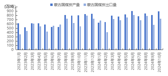 據(jù)蒙古國(guó)國(guó)家統(tǒng)計(jì)辦公室發(fā)布最新統(tǒng)計(jì)數(shù)據(jù)顯示,10月蒙古國(guó)原煤產(chǎn)量893.9萬(wàn)噸,同比增速達(dá)10.88%,較上月806萬(wàn)噸相比增加87.9萬(wàn)噸,環(huán)比增速10.91%。2024年1-10月蒙古國(guó)煤炭產(chǎn)量累計(jì)為8109.58萬(wàn)噸,較上年同期相比增加1661.7萬(wàn)噸,同比增長(zhǎng)25.8%。其中,硬煤(Hard coal)產(chǎn)量累計(jì)6964.6萬(wàn)噸,同比增長(zhǎng)26.1%;褐煤(Brown coal)產(chǎn)量累計(jì)1144.9萬(wàn)噸,同比增長(zhǎng)23.7%。根據(jù)蒙古國(guó)海關(guān)外貿(mào)統(tǒng)計(jì)報(bào)告數(shù)據(jù)顯示,2024年1-10月蒙古已累計(jì)出口煤炭6849.34萬(wàn)噸,較上年同期相比增加1409.61萬(wàn)噸,增速達(dá)25.9%。其中,10月蒙古煤炭出口量達(dá)727.44萬(wàn)噸,同比增加33%,環(huán)比增加25.1%。