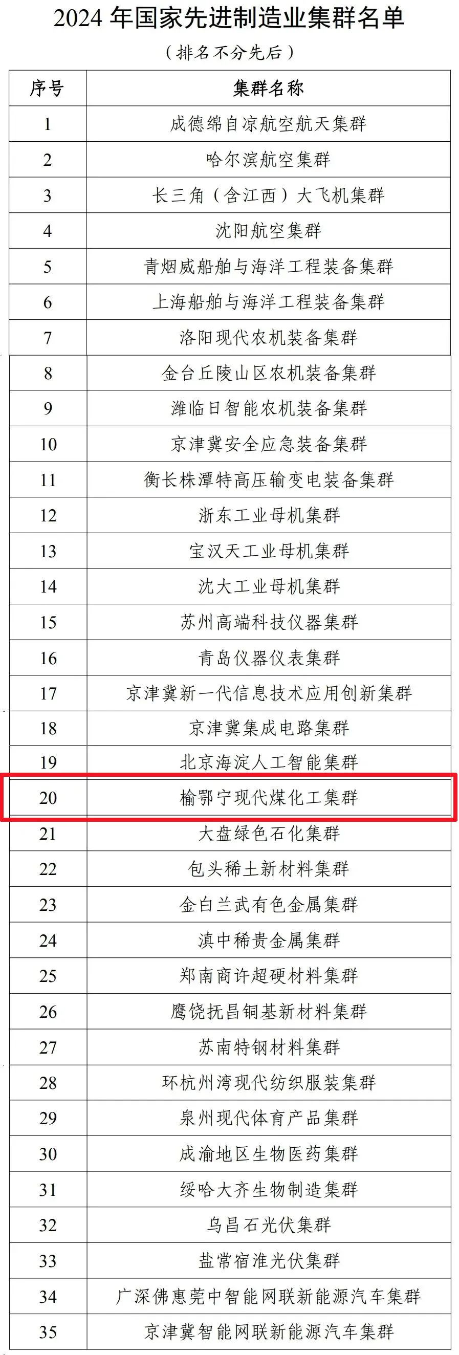 工業(yè)和信息化部近日公布了《2024年國(guó)家先進(jìn)制造業(yè)集群名單》,共計(jì)35個(gè)集群上榜。其中,榆鄂寧現(xiàn)代煤化工集群榜上有名。