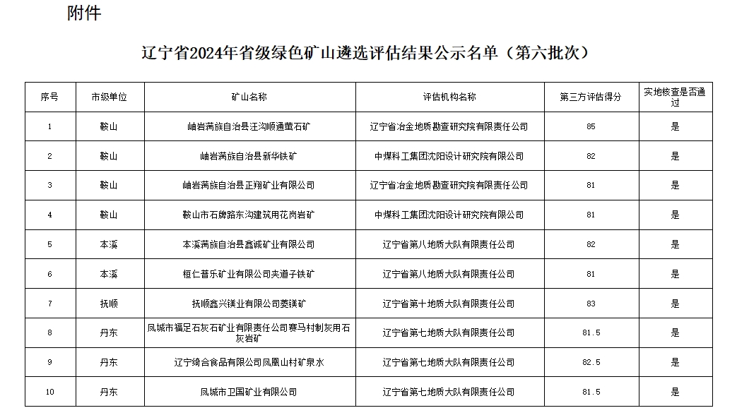 附件:遼寧省2024年省級綠色礦山遴選評估結(jié)果公示名單(第六批次)