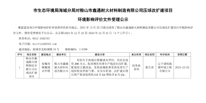附件:鞍山市鑫通耐火材料制造有限公司壓球改擴(kuò)建項(xiàng)目環(huán)境影響報(bào)告表(全文)