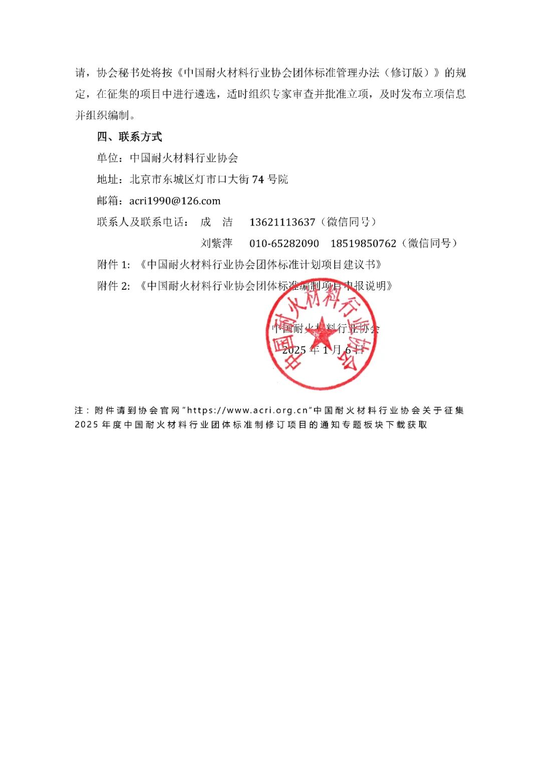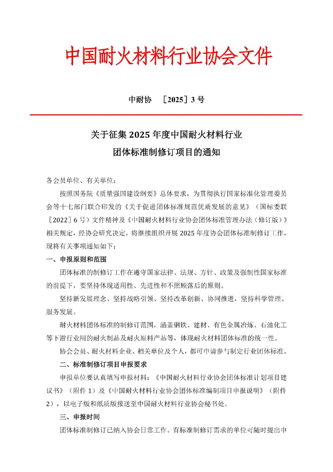 關(guān)于征集2025年度中國耐火材料行業(yè)團體標(biāo)準(zhǔn)制修訂項目的通知