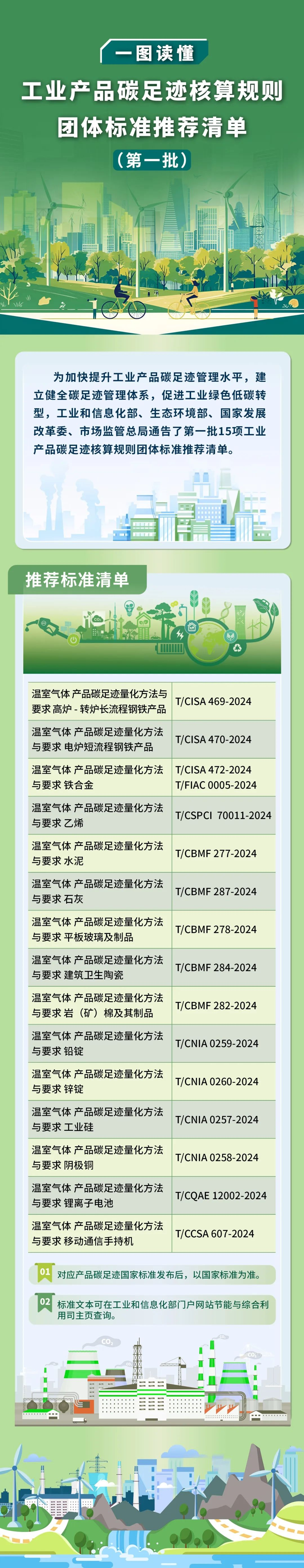 按照《工業(yè)和信息化部辦公廳 生態(tài)環(huán)境部辦公廳 國家發(fā)展改革委辦公廳 市場監(jiān)管總局辦公廳關(guān)于征集重點(diǎn)工業(yè)產(chǎn)品碳足跡核算規(guī)則標(biāo)準(zhǔn)研究課題的通知》《重點(diǎn)工業(yè)產(chǎn)品碳足跡核算規(guī)則標(biāo)準(zhǔn)編制指南》等相關(guān)要求,經(jīng)相關(guān)標(biāo)準(zhǔn)化機(jī)構(gòu)推薦、專家評審、網(wǎng)上公示等程序,工業(yè)和信息化部、生態(tài)環(huán)境部、國家發(fā)展改革委、市場監(jiān)管總局確定了15項(xiàng)工業(yè)產(chǎn)品碳足跡核算規(guī)則團(tuán)體標(biāo)準(zhǔn)推薦清單(第一批),涵蓋鋼鐵、鐵合金、乙烯、水泥、石灰、平板玻璃、建筑衛(wèi)生陶瓷、巖(礦)棉、鉛錠、鋅錠、工業(yè)硅、陰極銅、鋰離子電池、移動(dòng)通信手持機(jī)等產(chǎn)品。對于電解鋁等已發(fā)布碳足跡核算國家標(biāo)準(zhǔn)或行業(yè)標(biāo)準(zhǔn)的產(chǎn)品,不再推薦團(tuán)體標(biāo)準(zhǔn)。