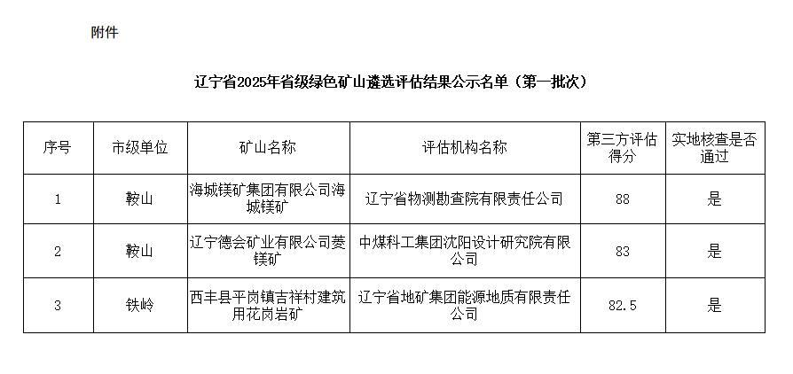 附件:遼寧省2025年省級(jí)綠色礦山遴選評(píng)估結(jié)果公示名單(第一批次)