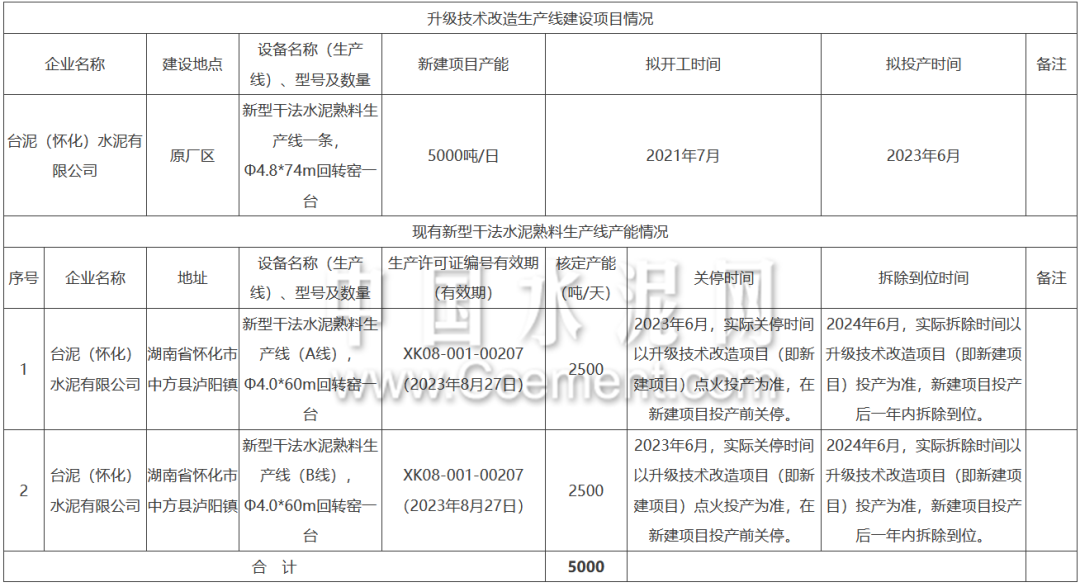 1月17日,湖南省工信廳發(fā)布“關(guān)于臺(tái)泥(懷化)水泥有限公司日產(chǎn)5000噸新型干法水泥熟料回轉(zhuǎn)窯生產(chǎn)線技術(shù)升級(jí)改造項(xiàng)目不再建設(shè)的公告”。