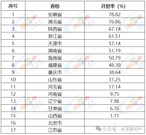 2025年3月10日-2025年3月16日全國各省開窯率排行