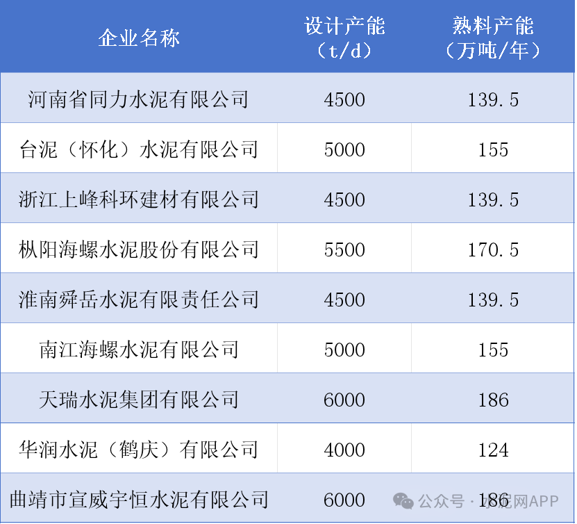 據(jù)統(tǒng)計(jì),今年以來,加上上述生產(chǎn)線已有9條水泥熟料生產(chǎn)線建設(shè)項(xiàng)目不再推進(jìn),合計(jì)年產(chǎn)能1395萬噸(按照310天計(jì)算),詳情見下表:
