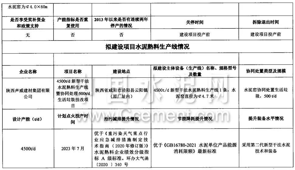 據(jù)悉,4月2日陜西聲威建材有限公司4500t/d熟料水泥生產(chǎn)線成功點火,并于4月5日順利投料成功。水泥網(wǎng)了解到,陜西聲威建材集團有限公司投資建設(shè)的日產(chǎn)4500噸新型干法熟料生產(chǎn)線技改項目于2022年8月開工,總投資9.271億元,建設(shè)新型智能化水泥熟料生產(chǎn)線,采用二代智能化新型干法預分解生產(chǎn)工藝,配套建設(shè)9MW純低溫余熱發(fā)電等高科技環(huán)保項目,項目達產(chǎn)后將實現(xiàn)產(chǎn)值不低于6億元,年均利潤總額1.6億元,稅收0.8億元,帶動就業(yè)400余人。產(chǎn)能置換項目如下: