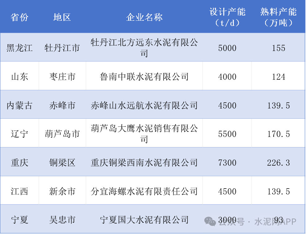 據(jù)中國水泥網(wǎng)水泥大數(shù)據(jù)研究院統(tǒng)計,當前在建熟料生產(chǎn)線產(chǎn)能2271.2萬噸,其中預計2025投產(chǎn)生產(chǎn)線8條,產(chǎn)能近1200萬噸,除去陜西聲威建材集團4500t/d線已投產(chǎn),預計今年還有7條熟料生產(chǎn)線將投產(chǎn):