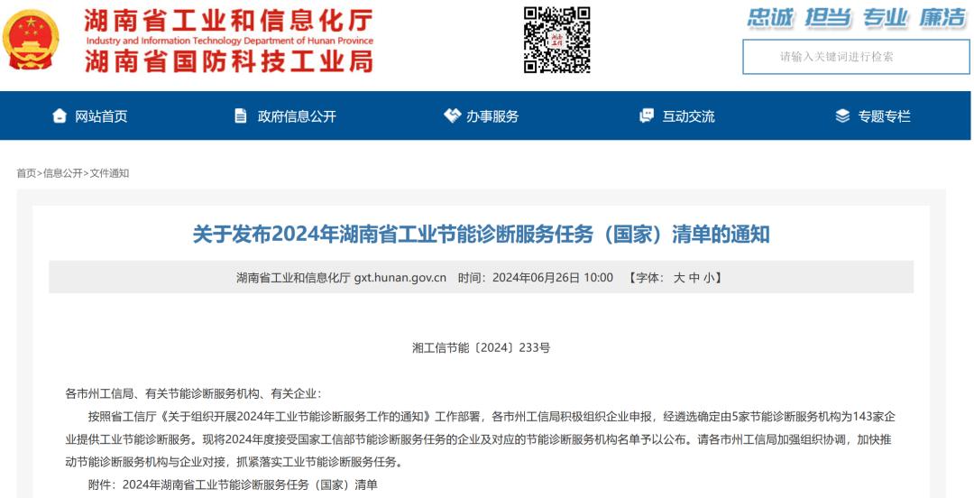 近日,湖南省工信廳發(fā)布2024年湖南省工業(yè)節(jié)能診斷服務(wù)任務(wù)(國家)清單的通知,要求各市州工信局加強組織協(xié)調(diào),加快推動節(jié)能診斷服務(wù)機構(gòu)與企業(yè)對接,抓緊落實工業(yè)節(jié)能診斷服務(wù)任務(wù)。