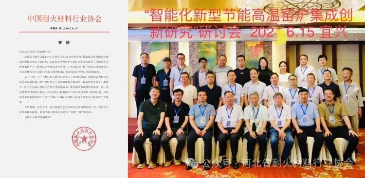 由河北北方窯業(yè)工程有限公司(下稱“北方窯業(yè)”)和河南省新型耐火材料創(chuàng)新中心聯(lián)合主辦,江蘇君耀科技集團承辦,宜興市丁山耐火器材有限公司和浙江嘉吉石化工程有限公司協(xié)辦的“智能化新型節(jié)能窯爐集成創(chuàng)新技術(shù)研究”研討會于2024年6月15日在陶都宜興成功舉行!此次研討會集思廣益、集成創(chuàng)新!助推中國耐火材料行業(yè)綠色低碳高質(zhì)量和可持續(xù)發(fā)展!中國耐火材料協(xié)會特地為本次研討會發(fā)來了賀信。