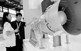 6月5日,以“走向碳中和之路”為主題的2025上海國際碳中和技術、產品與成果博覽會在上海新國際博覽中心開幕。本屆博覽會圍繞“應用驅動綠色轉型”,由主題展覽、系列論壇、貿易對接三大板塊構成,來自德國、荷蘭、日本、英國等15個國家和地區(qū)的逾300家行業(yè)企業(yè)全方位展示全球碳中和領域的前沿成果與實踐。圖為工作人員(右)在一個重型摻氫燃氣輪機模型旁向參觀者做介紹。