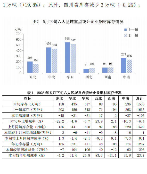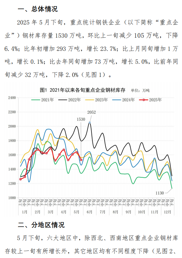 5月下旬重點(diǎn)統(tǒng)計(jì)企業(yè)鋼材庫存旬報(bào)