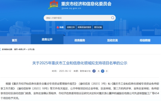 6月12日,重慶市經(jīng)濟(jì)和信息化委員會發(fā)布“關(guān)于2025年重慶市工業(yè)和信息化領(lǐng)域擬支持項(xiàng)目名單的公示”。