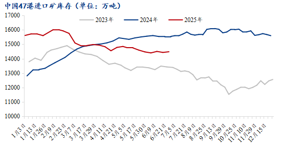 2.4庫(kù)存:6月中國(guó)47港鐵礦石庫(kù)存整體呈現(xiàn)累庫(kù)趨勢(shì)