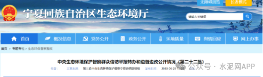 6月29日,寧夏回族自治區(qū)生態(tài)環(huán)境廳發(fā)布《中央生態(tài)環(huán)境保護(hù)督察群眾信訪舉報(bào)轉(zhuǎn)辦和邊督邊改公開情況(第二十二批)》。
