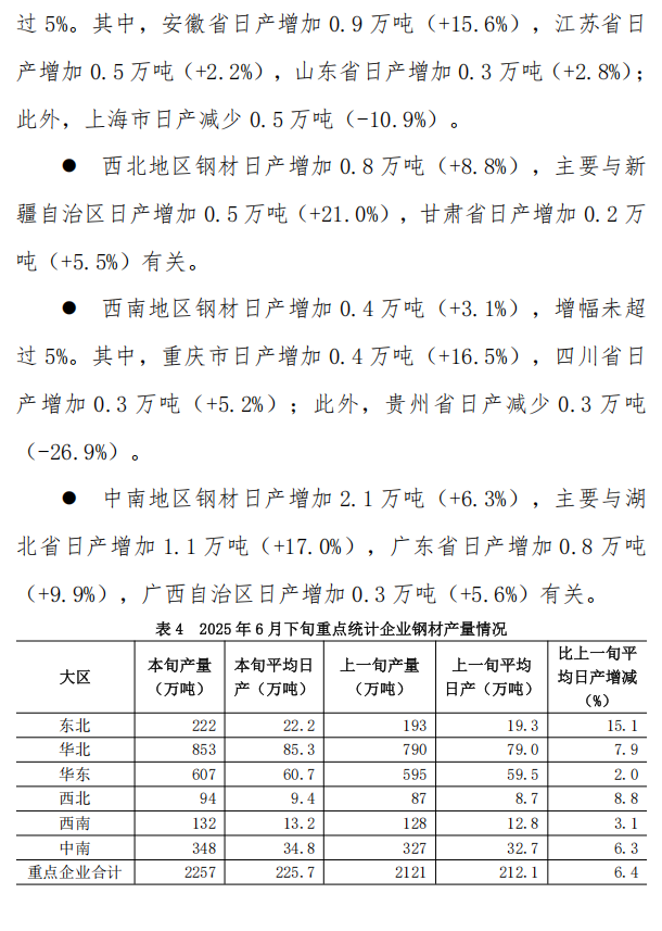 6月下旬重點(diǎn)統(tǒng)計(jì)鋼鐵企業(yè)鋼鐵產(chǎn)量旬報(bào)