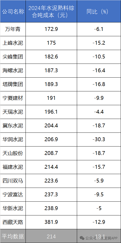 中國(guó)水泥網(wǎng)根據(jù)目前滬深和香港上市公司年報(bào)分析了各水泥企業(yè)相關(guān)數(shù)據(jù),下面僅從生產(chǎn)成本角度分析,誰(shuí)的水泥熟料綜合生產(chǎn)成本更低?生產(chǎn)成本低也意味著誰(shuí)在市場(chǎng)上競(jìng)爭(zhēng)力更強(qiáng)。下面就根據(jù)相關(guān)數(shù)據(jù)分析下24年度水泥企業(yè)生產(chǎn)成本情況(水泥熟料綜合生產(chǎn)成本指對(duì)外銷售的水泥和熟料合計(jì)數(shù)據(jù),部分企業(yè)還包含海外數(shù)據(jù),以下簡(jiǎn)稱噸生產(chǎn)成本)。