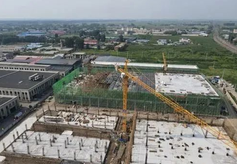 烈日炎炎,遼陽興旺石墨制品有限公司新建年產(chǎn)8000噸高端新材料項(xiàng)目建設(shè)現(xiàn)場,施工者不畏高溫加緊施工。