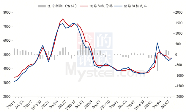 進(jìn)入8月份,石油焦市場(chǎng)交投延續(xù)積極氛圍,低硫焦再度推漲,帶動(dòng)市場(chǎng)焦價(jià)上調(diào)居多。煤瀝青原料煤焦油窄幅下行,深加工企業(yè)開工負(fù)荷相繼提升,煤瀝青基本面利好出盡,價(jià)格開始小幅回調(diào),據(jù)Mysteel測(cè)算,截至目前預(yù)焙陽(yáng)極生產(chǎn)成本較7月繼續(xù)增加147.46元/噸。后期東北煉廠即將開始檢修,低硫焦在供應(yīng)縮減預(yù)期支撐下,價(jià)格仍有上漲空間,指標(biāo)貨資源緊俏,預(yù)計(jì)價(jià)格穩(wěn)中上行,普貨石油焦積極出貨,預(yù)計(jì)窄幅震蕩運(yùn)行;煤瀝青原料高溫煤焦油仍存在一定下滑空間,深加工企業(yè)開工負(fù)荷提升,利空因素影響下預(yù)計(jì)新單價(jià)格弱勢(shì)整理。